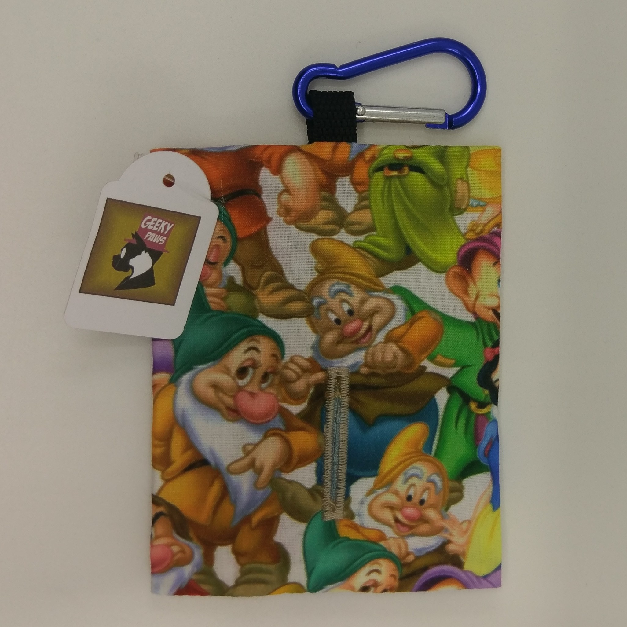 Pop a roll of plastic poo bags in the back of the dispenser, thread one through the opening at the front and clip to your geeky paws lead
