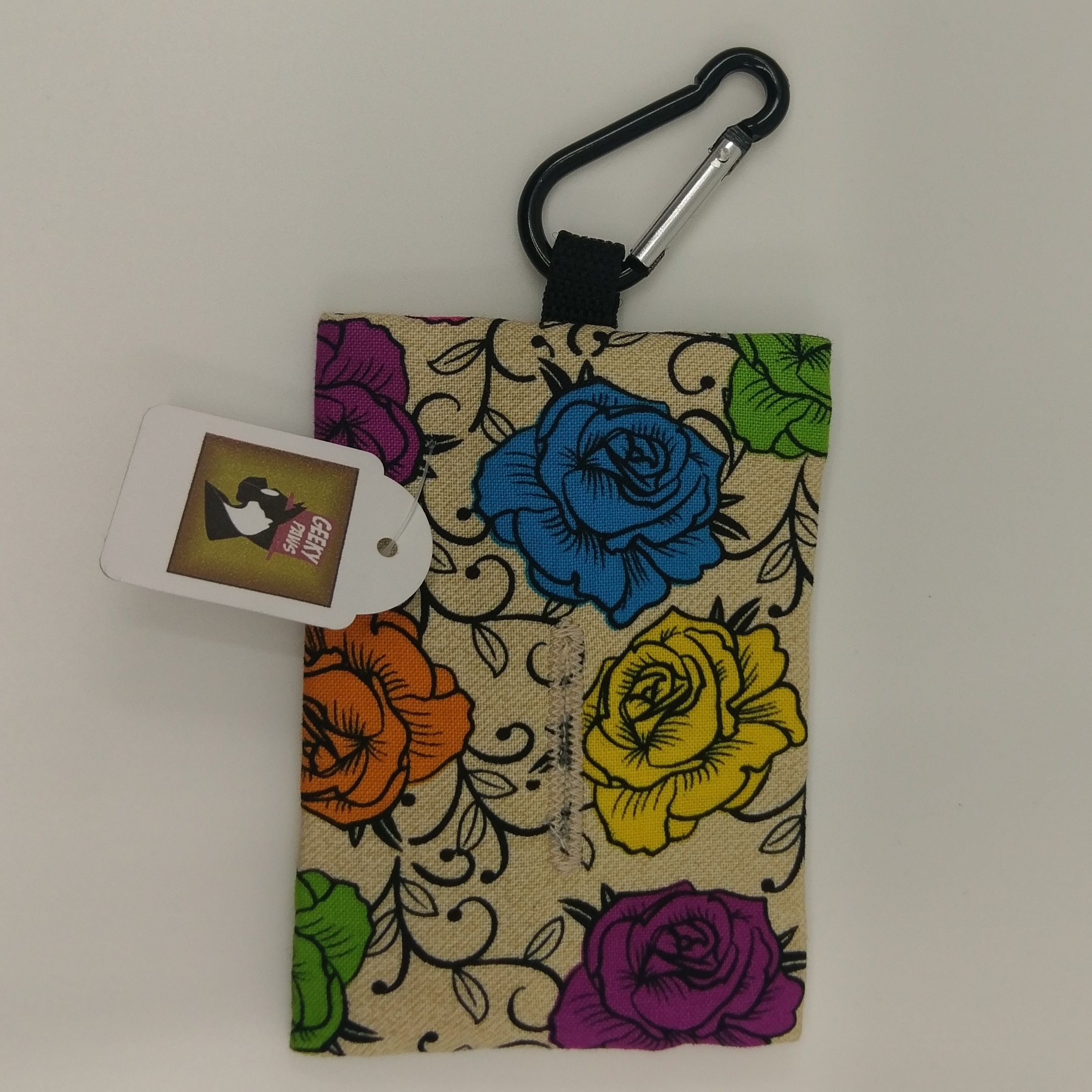 Pop a roll of plastic poo bags in the back of the dispenser, thread one through the opening at the front and clip to your geeky paws lead